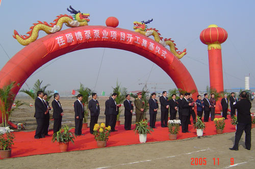 新聞中心 2005年11月9日,荏原博泵有限公司開(kāi)工奠基儀式在淄博高新技術(shù)開(kāi)發(fā)區(qū)隆重舉行。這標(biāo)志著荏原博泵泵業(yè)有限公司的建設(shè)工作已經(jīng)全面啟動(dòng),預(yù)示著荏原博泵泵業(yè)有限公司將穩(wěn)健地邁上蓬勃發(fā)展的道路。