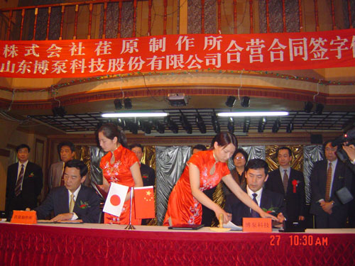 新聞中心 2005年4月27日,在博山萬杰國際大酒店山東博泵科技股份有限公司與日本株式會社荏原制作所正式簽署了注冊資本1100萬美元的合營公司――荏原博泵有限責任公司。該公司的建立將通過引進世界最大的泵企業(yè)――日本株式會社荏原制作所的先進技術,加快大型泵、高壓泵國產(chǎn)化進程,建成具有國際競爭力的一流企業(yè)。為中國水電、核電及超臨界火電項目,為南水北調(diào)等大型水力工程提供高質(zhì)量、高技術含量的一流泵產(chǎn)品,提升中國機械工業(yè)技術、質(zhì)量水平,促進產(chǎn)品更新?lián)Q代,為中國電力、冶金、水力事業(yè)的發(fā)展乃至中國國民經(jīng)濟的發(fā)展做出應有的貢獻。