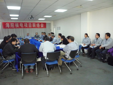 聯(lián)絡(luò)會主要是對我公司中標(biāo)海陽核電項(xiàng)目一期工程2*1000MW項(xiàng)目中的開閉試泵和循環(huán)水泵的有關(guān)文件進(jìn)行確認(rèn),以及進(jìn)度計劃等后續(xù)開始的建造工作進(jìn)行商議。